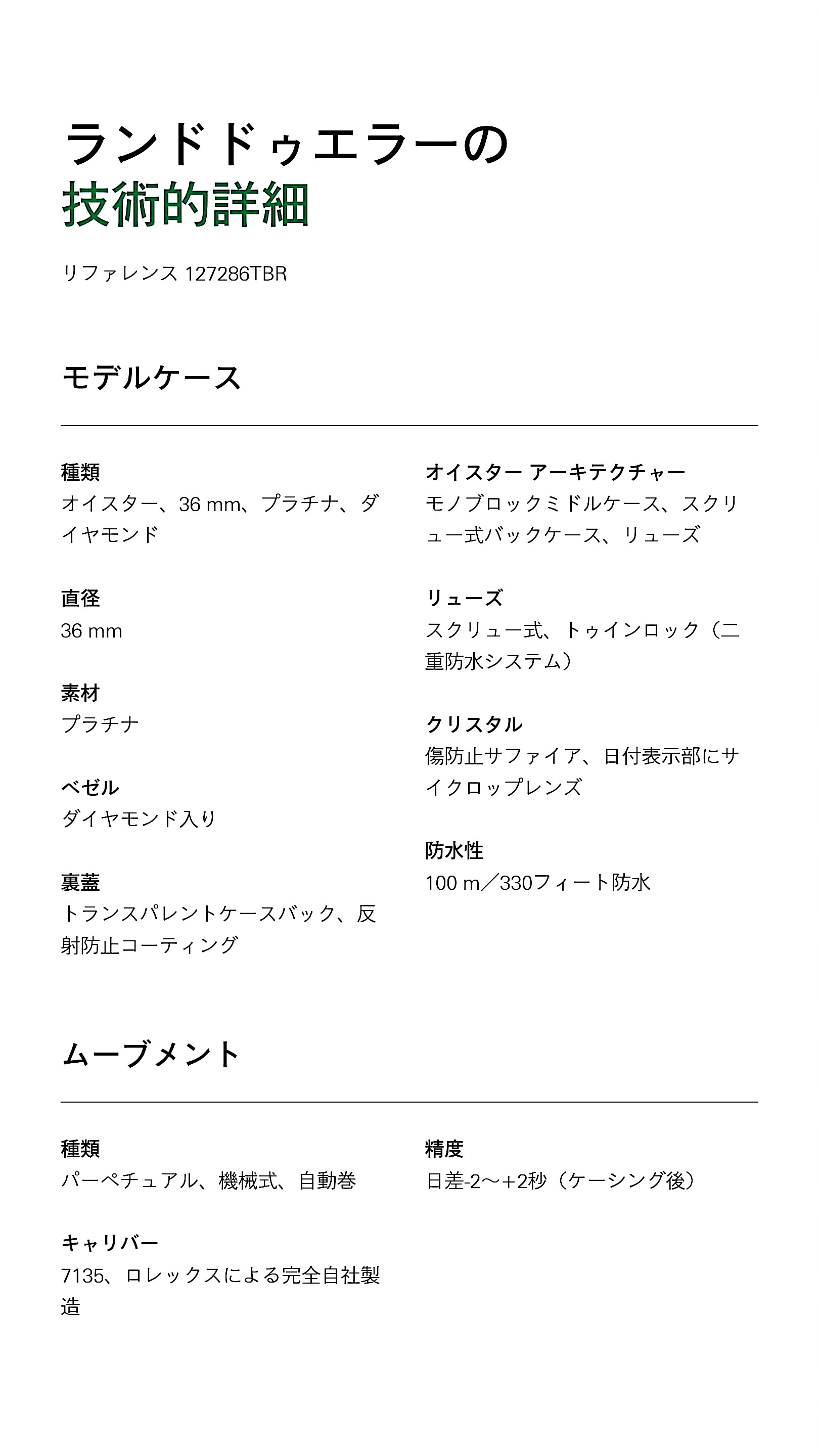 ロレックス ランドドゥエラー 36 オイスター、36 mm、プラチナ、ダイヤモンド リファレンス m127286tbr-0001